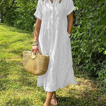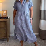 De Claire Moeiteloze Gestreepte Overhemdjurk combineert tijdloze charme met dagelijks gebruiksgemak. Met een knoopsluiting aan de voorkant, overhemdkraag en losse pasvorm is het de perfecte keuze voor casual uitjes, kantoorlooks of ontspannen weekends. Het ademende ontwerp maakt deze jurk net zo comfortabel als stijlvol.