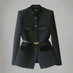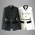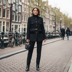 Combineer de Elara jas met een elegante blouse en slim-fit pantalon voor een perfecte look die zowel op kantoor als bij speciale gelegenheden indruk zal maken.