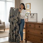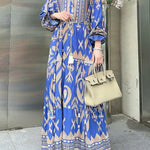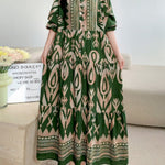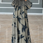 De Elena Bohemian Bloom Maxi-jurk is waar comfort en kunst samenkomen. Met haar vloeiende gelaagde rok, opvallende ballonmouwen en prachtig gedetailleerd lijfje, is deze jurk een viering van ontspannen elegantie. Perfect voor casual uitjes, weekendtrips of een stijlvolle brunch, en beweegt prachtig mee bij elke stap. De lichtgewicht stof houdt je koel en comfortabel, terwijl de opvallende print een vleugje boho-romantiek toevoegt.