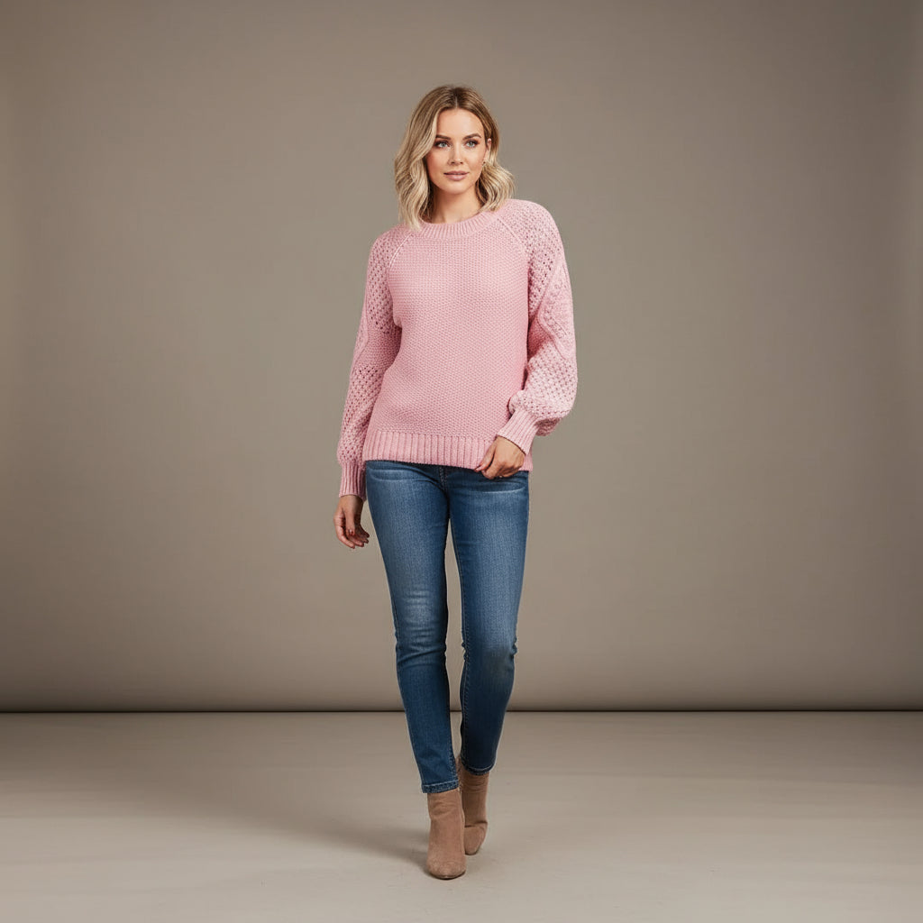Deze trui combineert een vrouwelijke stijl met een eigentijdse uitstraling. Het evenwichtige ontwerp zorgt voor een comfortabel gevoel en een ontspannen silhouet dat op elk moment warmte en natuurlijkheid uitstraalt.