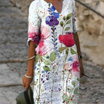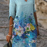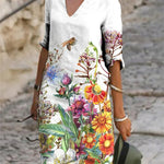 De Heidi Bloeiende Elegantiejurk is een perfecte mix van stijl en comfort. Met haar luchtige pasvorm, V-hals en 3/4-mouwen is deze jurk ideaal voor zonnige dagen of een gezellige avond uit. Het bloemenpatroon geeft een romantische en speelse uitstraling, terwijl de lichtgewicht en ademende stof je koel en zelfverzekerd houdt.