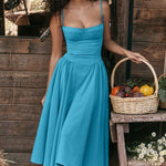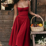 Deze stijlvolle midi-jurk combineert verfijning en comfort in een tijdloos ontwerp. De nauwsluitende bovenkant en zwierige rok accentueren je figuur op een flatterende manier. Dankzij de dunne schouderbandjes en het luchtige materiaal is deze jurk perfect voor zowel speciale gelegenheden als zomerse dagen. Draag hem met hakken en subtiele sieraden voor een elegante uitstraling.