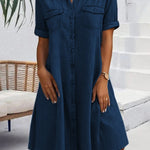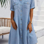 Janny™ | Korte mouw spijkerjurk met knoopsluiting