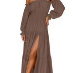 De Kendra Romantische Off-Shoulder Maxi Jurk combineert een verleidelijke stijl met ontspannen elegantie. De off-shoulder halslijn en gelaagde rok creëren een vrouwelijke look, terwijl de lichte stof je comfortabel houdt. Perfect voor diners bij zonsondergang, strandwandelingen of zomerfeesten – deze jurk is jouw ultieme statementstuk.