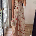Lange bloemige jurk met natuurlijke charme en vloeiende elegantie