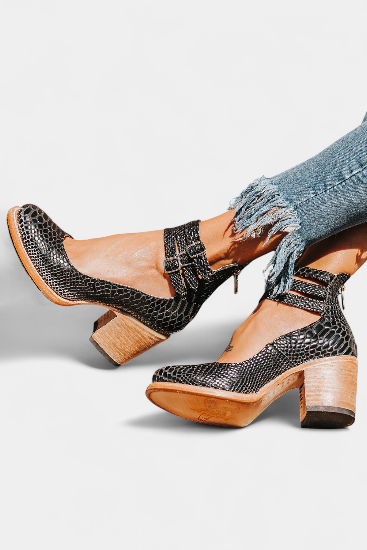 Deze schoenen combineren een klassiek ontwerp met een gedurfde en moderne uitstraling. De elegante structuur en de details van de sluiting zorgen voor kracht, persoonlijkheid en evenwicht bij elke stap.