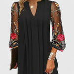 Artistiek Borduurwerk – De doorschijnende mouwen tonen delicate, levendige bloemensteken, wat zorgt voor een unieke en boeiende visuele uitstraling.