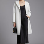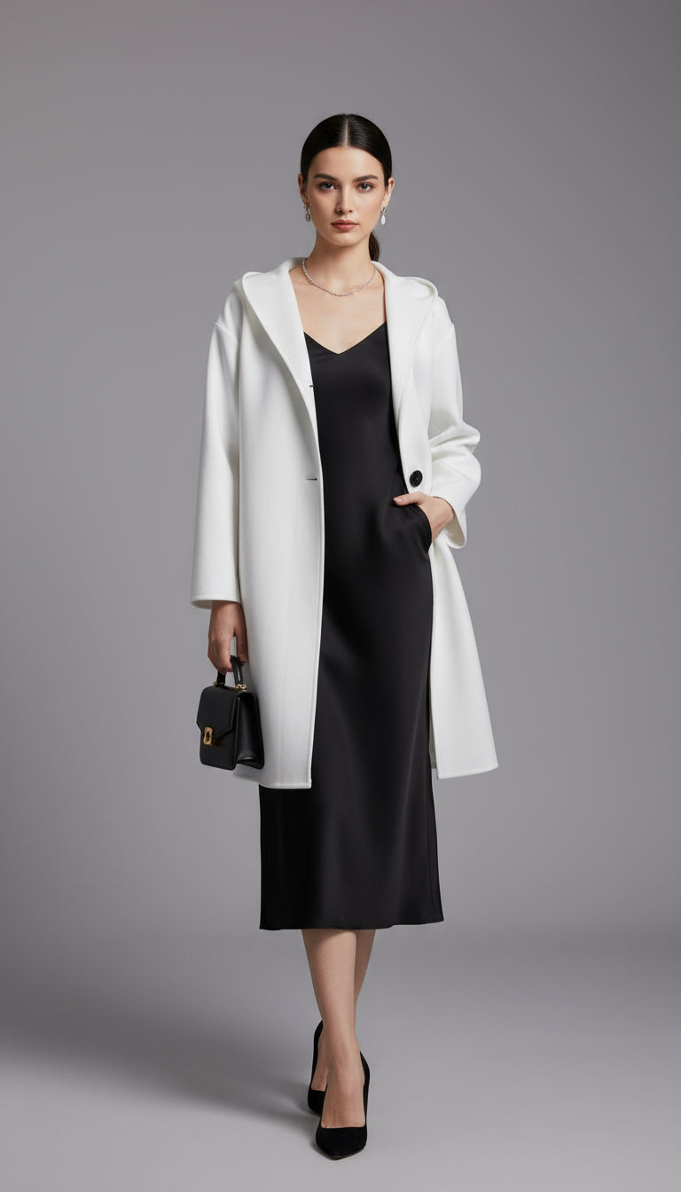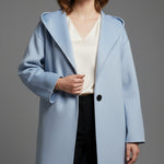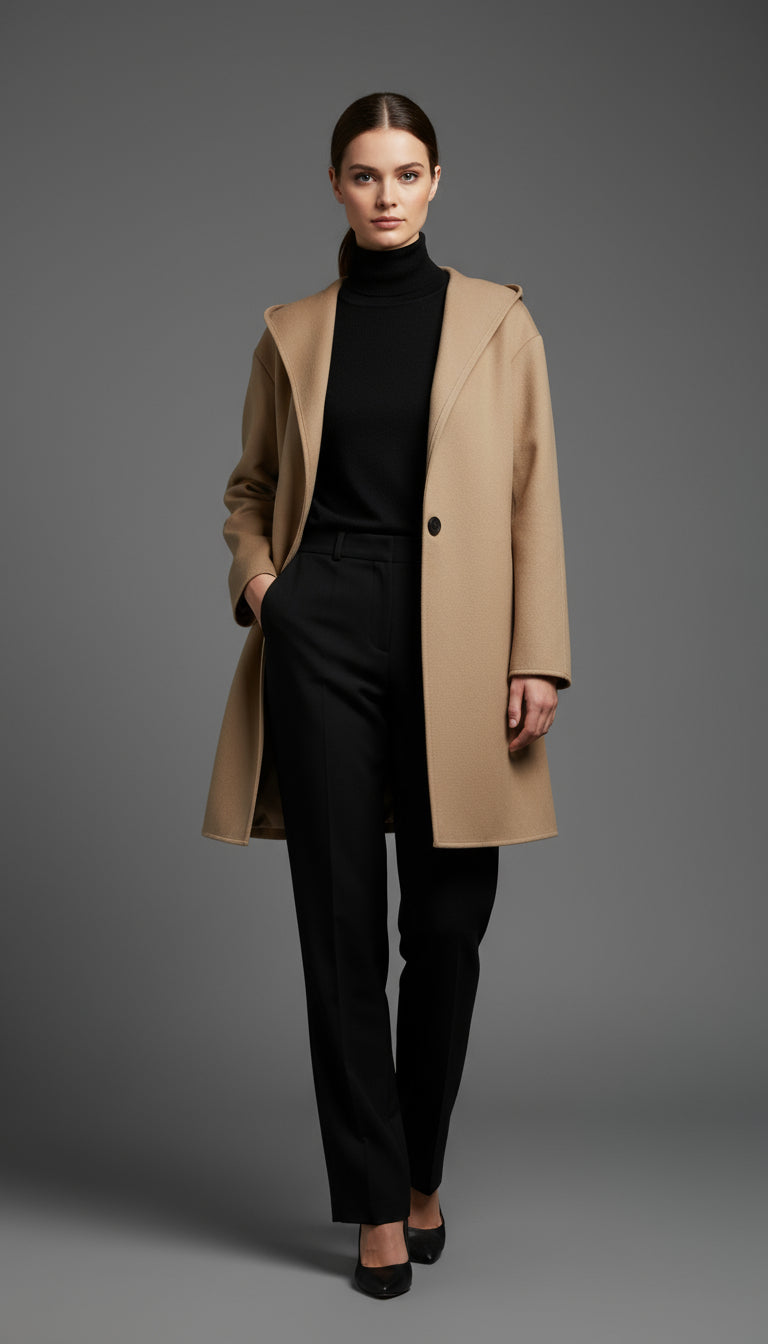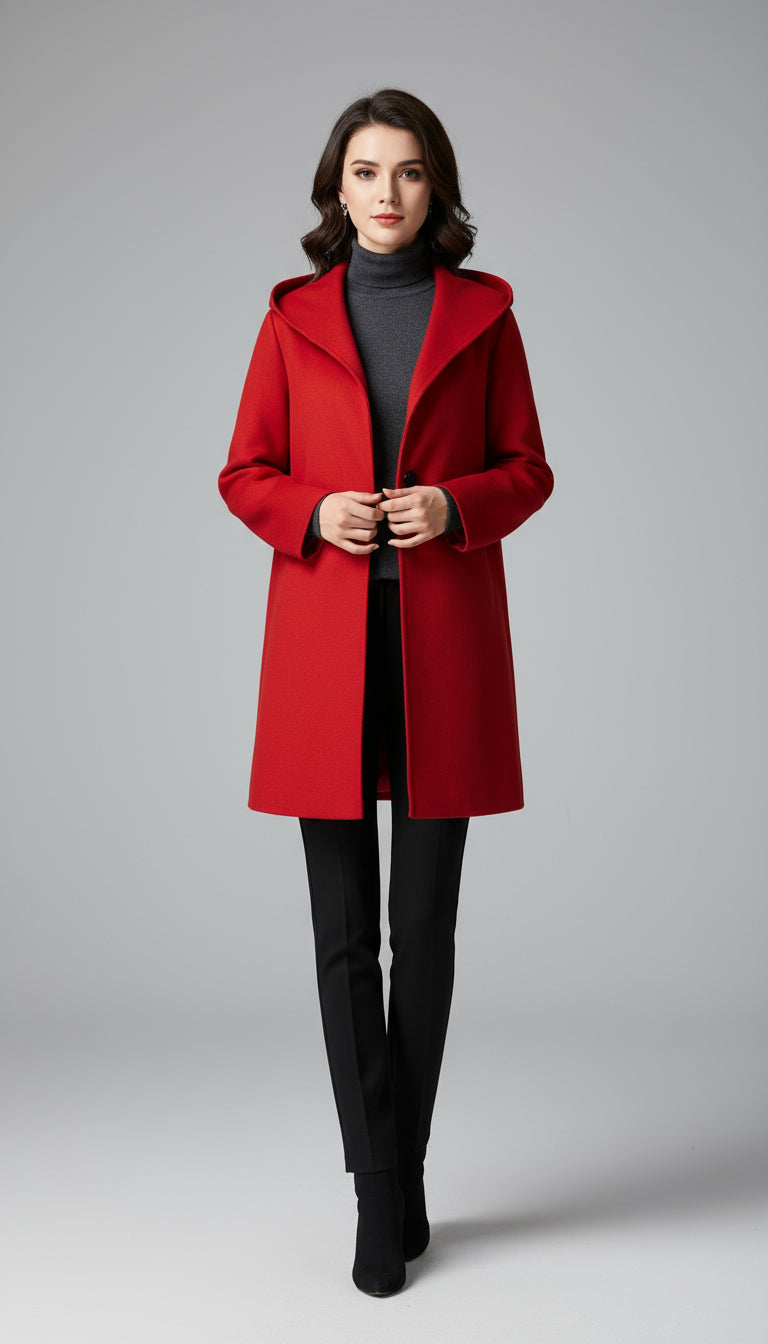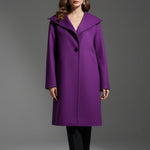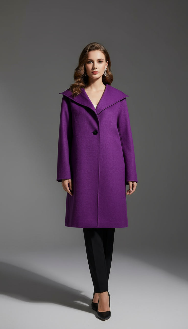 Een vrouwelijke jas met een moderne en elegante snit, ontworpen om warmte en stijl te bieden op de koudste dagen. De wijde silhouet en omhullende kraag versterken elke outfit en creëren een verfijnde en veelzijdige look die zowel geschikt is voor formele gelegenheden als voor informele momenten.