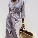 De Anemoon Gestreepte Jurk met Kraag combineert tijdloze verfijning met dagelijks comfort. Het klassieke gestreepte ontwerp en de elegante kraag geven een chique touch, terwijl de ruime pasvorm zorgt voor maximaal comfort. Perfect voor op kantoor, in je vrije tijd of voor een speciale gelegenheid!