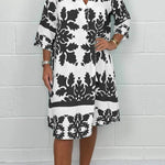 Breng moeiteloze elegantie in je garderobe met de Celeste™ Lente Jurk. Met een flatterende V-hals, stijlvolle patronen en lange mouwen, biedt deze jurk de perfecte balans tussen mode en comfort. De losse pasvorm zorgt voor een luchtige en ontspannen uitstraling, ideaal voor elke gelegenheid.