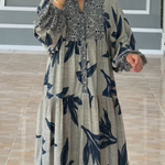 De Elena Bohemian Bloom Maxi-jurk is waar comfort en kunst samenkomen. Met haar vloeiende gelaagde rok, opvallende ballonmouwen en prachtig gedetailleerd lijfje, is deze jurk een viering van ontspannen elegantie. Perfect voor casual uitjes, weekendtrips of een stijlvolle brunch, en beweegt prachtig mee bij elke stap. De lichtgewicht stof houdt je koel en comfortabel, terwijl de opvallende print een vleugje boho-romantiek toevoegt.