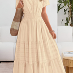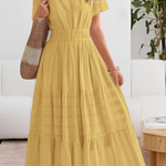 De Freya Zonnige Charme Maxi-jurk met Lagen combineert ontspannen vrouwelijkheid met tijdloze stijl. Met een flatterende gesmokte taille, vloeiende gelaagde rok en een bescheiden split halslijn is deze jurk ideaal voor zowel casual dagen als feestelijke momenten. Gemaakt van lichtgewicht stof die moeiteloos valt en prachtig meebeweegt, zodat je er de hele dag stijlvol en comfortabel uitziet.