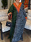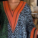 De Imani Afrikaanse Print V-Hals Kaftan Maxi Jurk combineert culturele charme met modern comfort. De tweekleurige print, diepe V-hals en losse pasvorm maken het ideaal voor zowel feestelijke gelegenheden als ontspannen dagen.