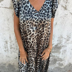• Stijlvol & elegant – De opvallende luipaardprint en diepe V-hals zorgen voor een krachtige, vrouwelijke look.