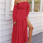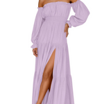 De Kendra Romantische Off-Shoulder Maxi Jurk combineert een verleidelijke stijl met ontspannen elegantie. De off-shoulder halslijn en gelaagde rok creëren een vrouwelijke look, terwijl de lichte stof je comfortabel houdt. Perfect voor diners bij zonsondergang, strandwandelingen of zomerfeesten – deze jurk is jouw ultieme statementstuk.