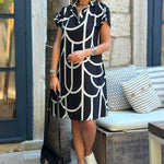 - Comfortabele korte mouwen: Korte mouwen bieden comfort en bewegingsvrijheid, terwijl ze je koel houden bij warm weer. Ze voegen een ontspannen en stijlvolle look toe aan de jurk.