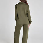 - Slankmakend Design: De high-waisted broek en vloeiende top creëren een gestroomlijnd silhouet.