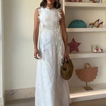 De Sabelle Bloesem Elegant Maxi Jurk straalt pure gratie uit. Met verfijnde kanten bloemdetails, een mooi aansluitend lijfje en een sierlijke lange rok is deze jurk perfect voor bruiloften, tuinfeesten of andere speciale gelegenheden. Licht en verfijnd – met Isabelle voel je je net zo mooi als je eruitziet.