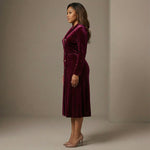 Een jurk die de kracht van een blazersnit combineert met de soepelheid van een lange rok, waardoor een krachtig en ultravrouwelijk silhouet ontstaat. De stof zorgt voor een verfijnde afwerking en een elegante beweging, perfect voor speciale gelegenheden of om op te vallen met een andere look vol persoonlijkheid.