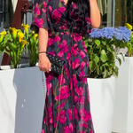 De Viviana Bloeiende Elegant Wikkel Maxi Jurk combineert de charme van bloemenprints met de tijdloze schoonheid van een wikkelmodel. Met korte vlindermouwen, een V-hals en een tailleceintuur flatteert hij je figuur en biedt hij comfort.