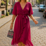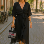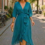 Stel je voor een jurk die niet alleen flatteert, maar jou laat voelen zoals je écht bent – licht, vrouwelijk en moeiteloos elegant. Zaza™ is meer dan een kledingstuk. Het is een gevoel van vrijheid, een subtiele blikvanger, een stijlstatement zonder woorden.