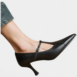 De verfijnde en tijdloze Zulema-hakken hebben een gestroomlijnd silhouet dat de klassieke esthetiek van de T-Bar combineert met een moderne en zelfverzekerde uitstraling. Ze zijn ontworpen om moeiteloos elegantie uit te stralen en vormen de ideale aanvulling op formele of verfijnde kantooroutfits.