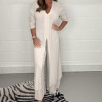 - Casual Stijl: De lange blouse voegt een vleugje verfijning toe, terwijl de luchtige broek ultieme bewegingsvrijheid biedt.