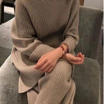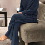 Verhoog uw stijl terwijl u warm blijft met het klassieke gebreide set Joséphine. Deze set combineert comfort met tijdloze elegantie, perfect voor frisse herfstdagen en winteravonden. Met zijn ruime pasvorm en zachte textuur past het perfect in uw garderobe voor een chique en casual look.