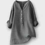 Linnen blouse in felrood, met losse pasvorm en knopen aan de voorkant. Een fris, comfortabel en elegant kledingstuk dat zowel bij casual als bij meer verfijnde looks past.