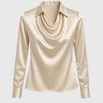De geplooide halslijn voegt een geraffineerd accent toe, terwijl de subtiele glans een vleugje luxe toevoegt aan je alledaagse look.