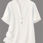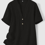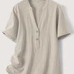 De Tara blouse is een fijne aanvulling op je dagelijkse garderobe. De houten knopen aan de voorkant geven een natuurlijke touch, terwijl de lichte stof zorgt voor een comfortabele en frisse uitstraling.