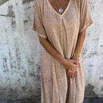 De Aafje™ | Vloeiend Midijurk met Losse Pasvorm combineert moeiteloze elegantie met ultiem draagcomfort. Dankzij de losvallende snit, subtiele plooien en V-hals is dit de perfecte jurk voor zomerse dagen – of je nu naar het strand gaat, door de stad wandelt of ontspant in de tuin.