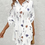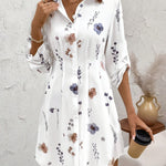 Ervaar tijdloze charme en moeiteloze elegantie met deze stijlvolle blousejurk. De vloeiende pasvorm en subtiele bloemenprint zorgen voor een verfijnde en vrouwelijke uitstraling. Dankzij de klassieke knoopsluiting en opgerolde mouwen is deze jurk zowel casual als chic te dragen.