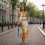 De Julia Moderne Strandjurk combineert comfort met een speelse, kunstzinnige print. De luchtige pasvorm en mouwloze stijl maken dit de perfecte jurk voor warme dagen op het strand, op vakantie of tijdens een ontspannen uitstapje.