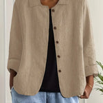 De Kendra Casual Blouse-Jas met Knoopsluiting biedt de perfecte balans tussen comfort en verfijnde eenvoud. Met de overhemdkraag, knoopsluiting en driekwartmouwen is dit een veelzijdig kledingstuk dat je zowel open over een T-shirt kunt dragen als dichtgeknoopt voor een nette, klassieke uitstraling. Ideaal voor casual dagen, weekendoutfits of als laagje op kantoor – deze lichtgewicht jas maakt dagelijkse stijl moeiteloos.