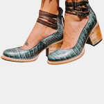 Deze schoenen combineren een klassiek ontwerp met een gedurfde en moderne uitstraling. De elegante structuur en de details van de sluiting zorgen voor kracht, persoonlijkheid en evenwicht bij elke stap.