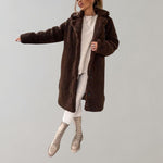 De Aurora stijlvolle zachte teddy jas voor dames is precies wat je nodig hebt! Verkrijgbaar in abrikoos, bruin, khaki en koffie, deze lange teddy jas is een must-have in jouw wintergarderobe.